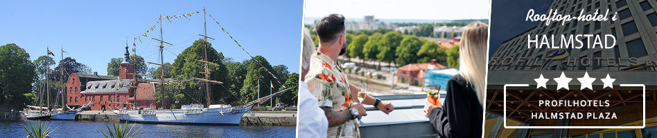 Når I står med en cocktail i hånden på tagterrassen på det flotte, 4-stjernede Halmstad Plaza og ser solen gå ned over byen og havet – så er I helt bogstaveligt havnet på toppen. Her kan I glæde jer til forkælelse med wellness og lækre faciliteter – og så er I klar til at gå ombord i Halmstads perlerække af muligheder: Shopping med en kursfordel, som aldrig har været bedre, cafe- og konditoribesøg i de historiske, brostensbelagte gader – og måske et slag golf, nu hvor I er landet i Sveriges golfhovedstad? Om sommeren er Halmstad oplagt til årets miniferie, hvor udflugten blandt andet kan gå til Sveriges måske bedste badestrand, Tylösand, som alle svenskere kender for sit fine sand og sin evige sommernostalgi.